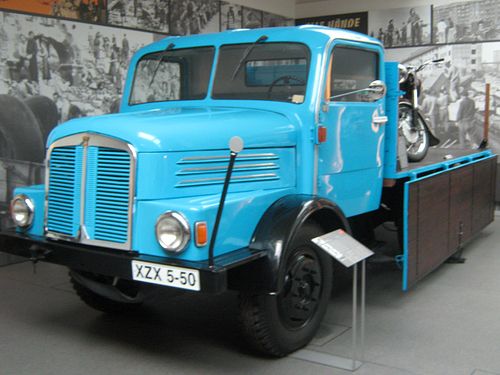 Von den ausgestellten DDR-Autos habe ich leider nur diese beiden Bilder. Hier der Horch H 3 A, LKW mit Ladepritsche, 1950 - 1959. Ab Gruendung des >>VEB Sachsenring Automobilwerke Zwickau<< 1958 lautete die Typbezeichnung S 400. Hat ersten in der DDR entwickelten Dieselmotor, 4 Zylinder, 6.024 ccm, 80 PS, 60 km/h, Nutzlast 4 t, 20 l/100 km, 24.947 Mark (der DDR)