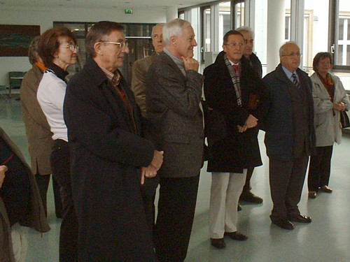 Aufmerksame Zuhoerer im Treppenhaus des IFW nach der Besichtigung der Labore fuer Nanotechnologie.